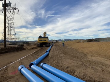 This project involved installing approximately 2,700 linear feet of 12-inch water main pipe, including five 12-inch gate valves, one 8-inch gate valve, four hydrant assemblies, three mainline reconnections, and six water service reconnections along Rodeo Road and Pizer Avenue.